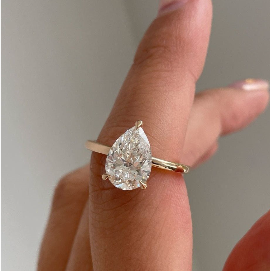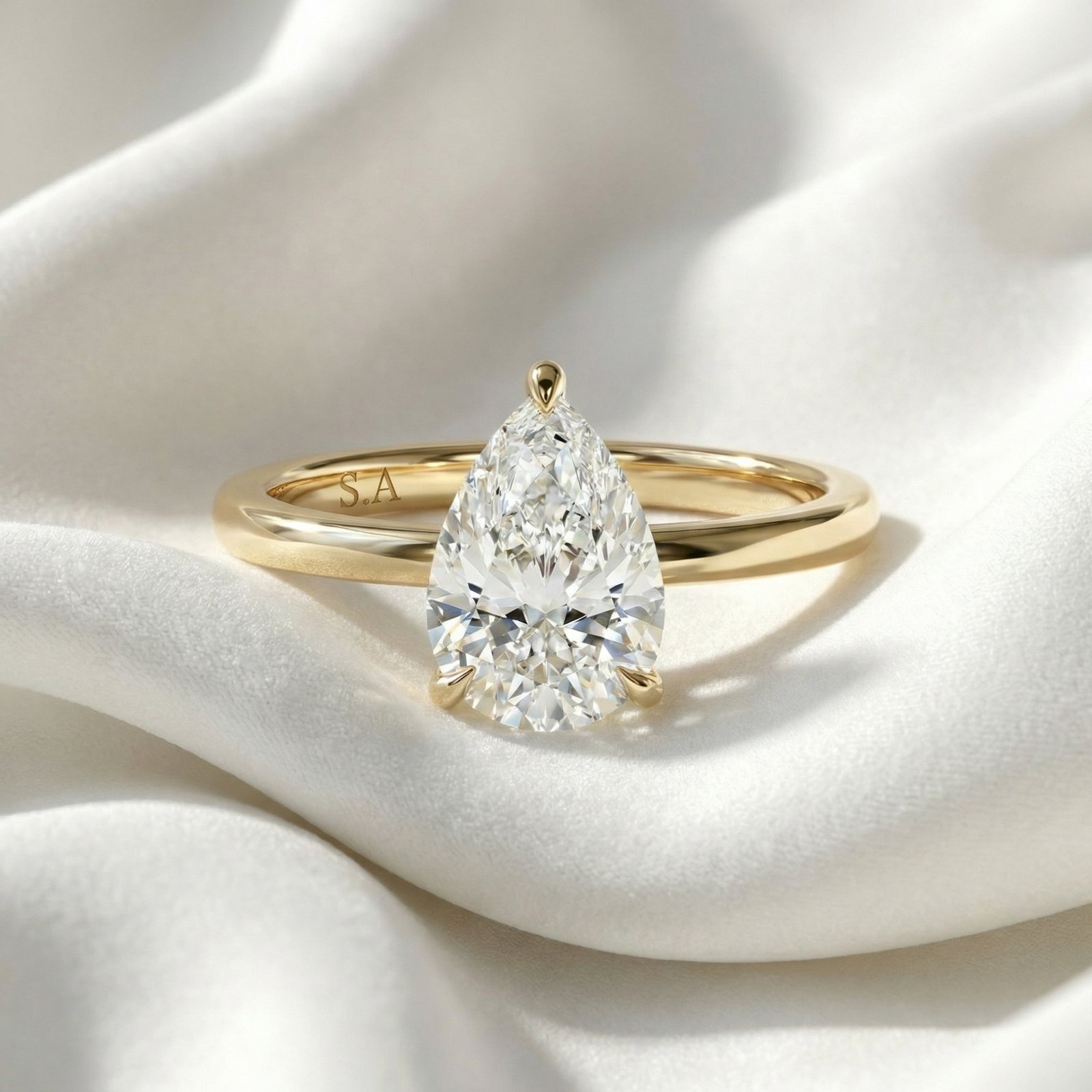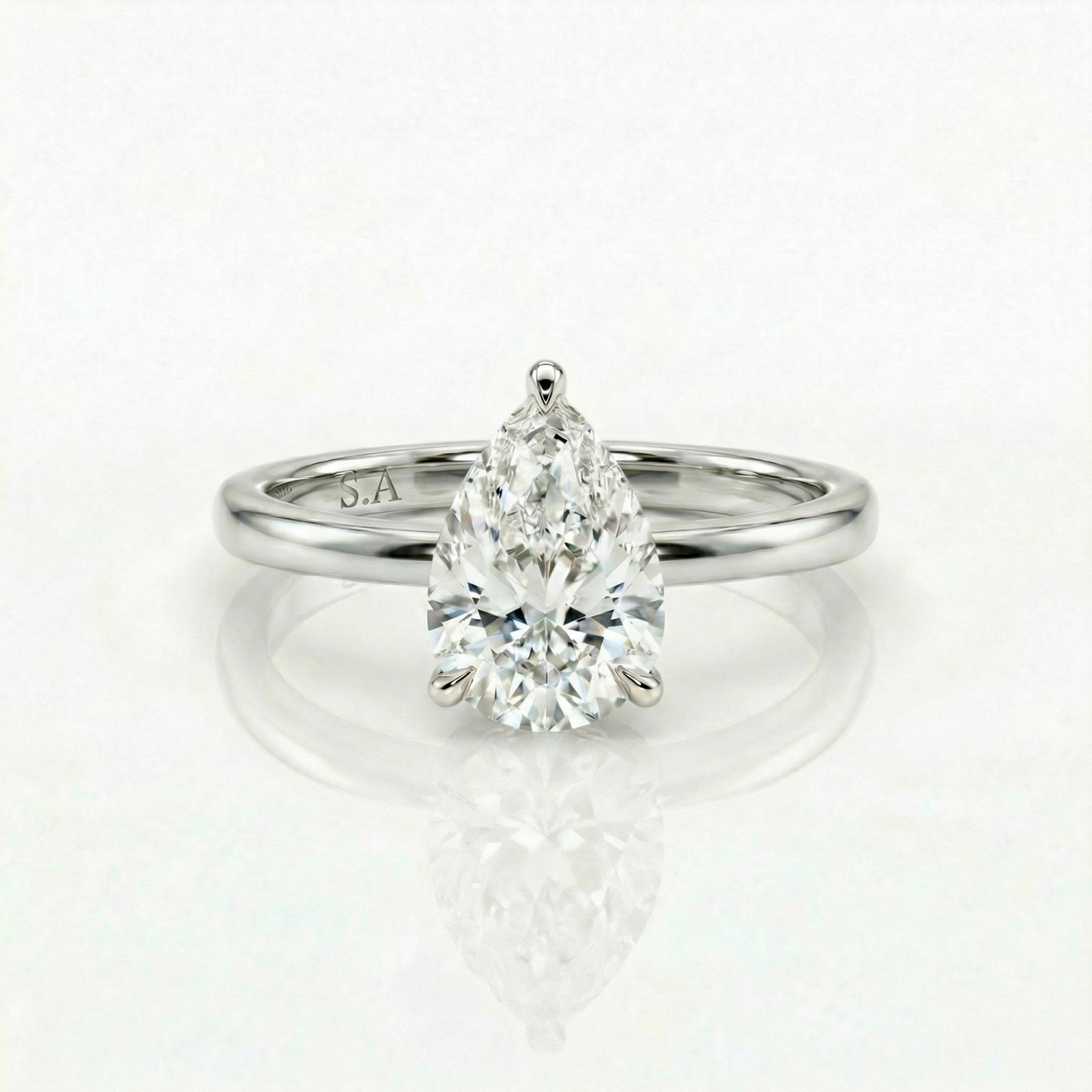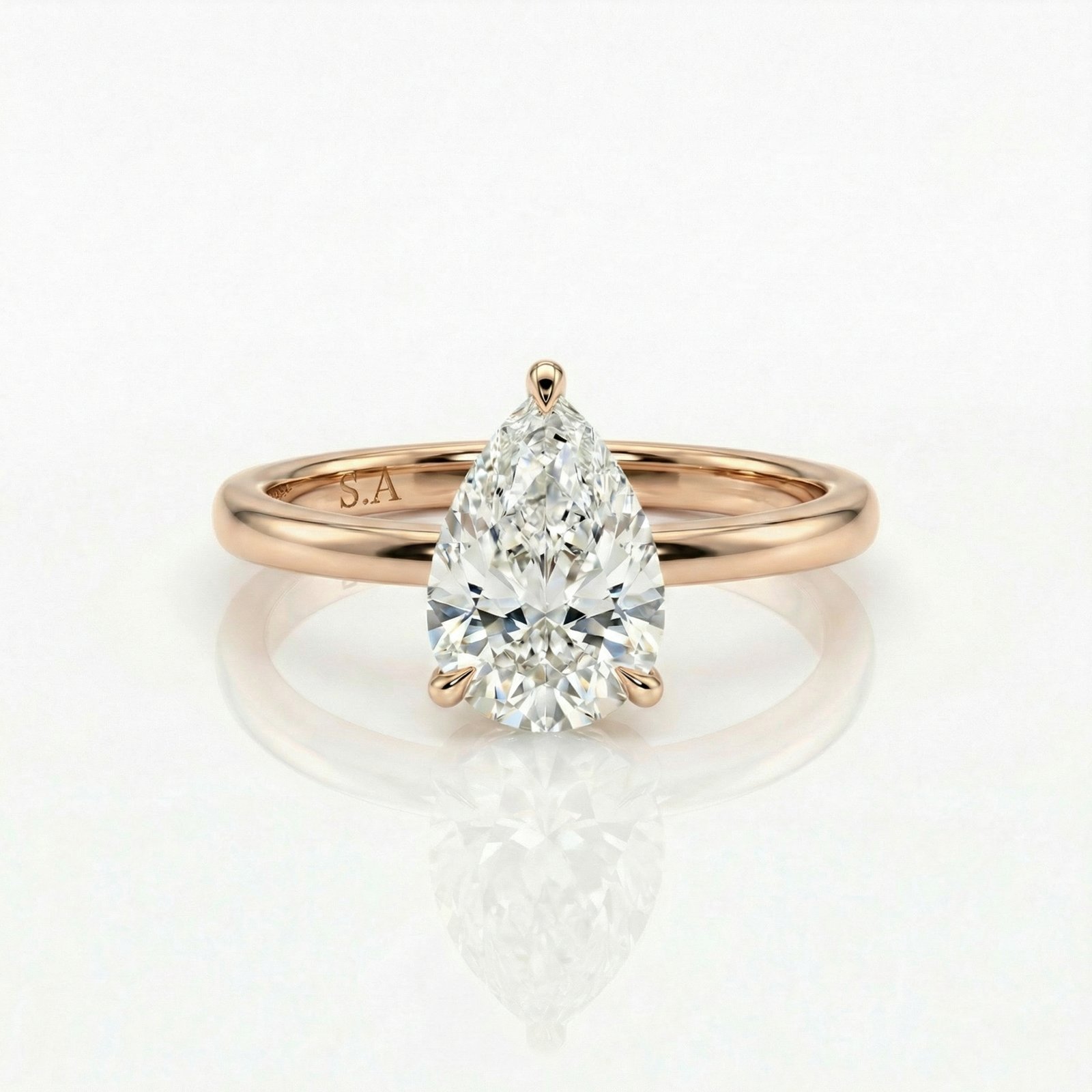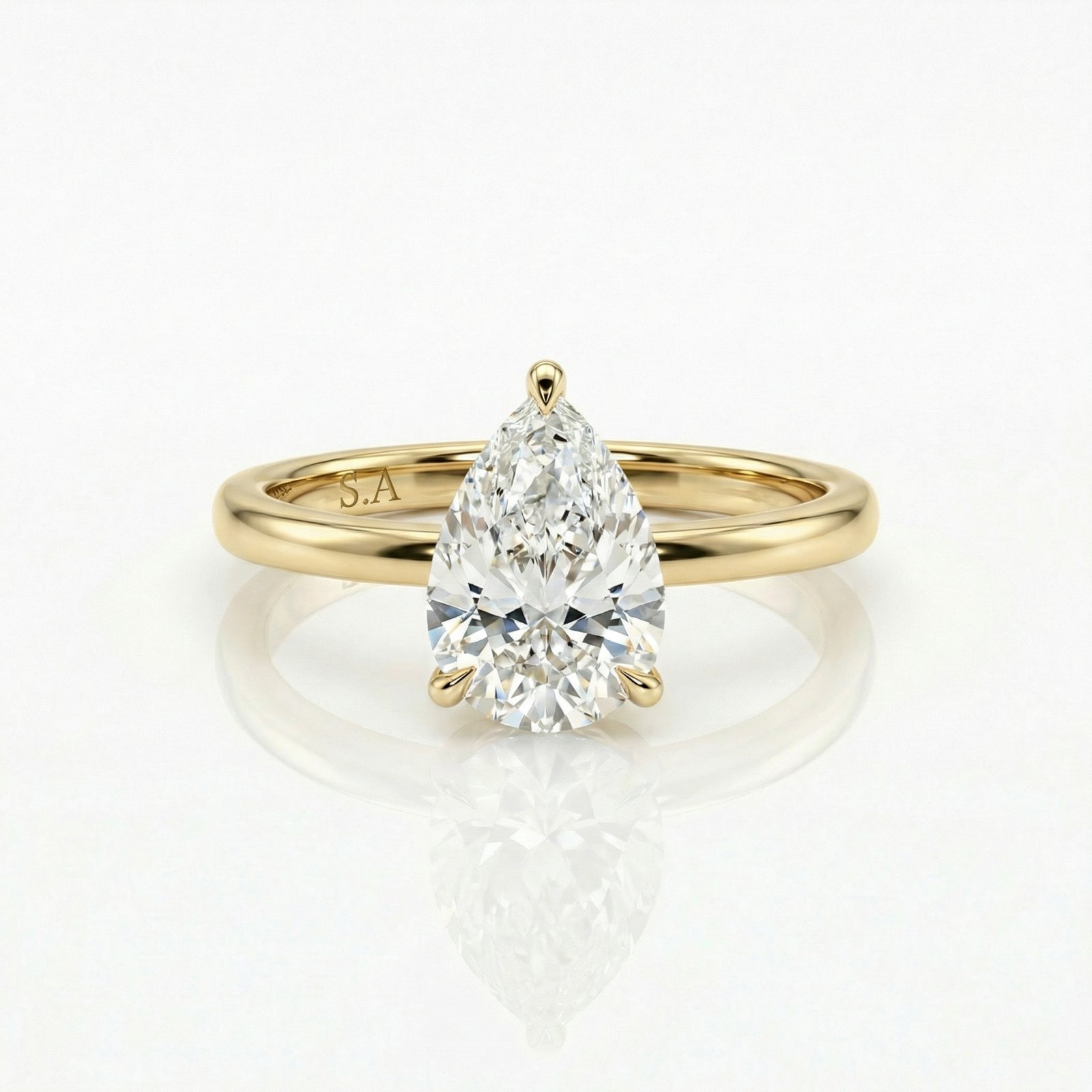 טבעת מיוחדת משובצת יהלום בחיתוך טיפה במשקל לבחירתך בעיצוב קלאסי ועל זמני