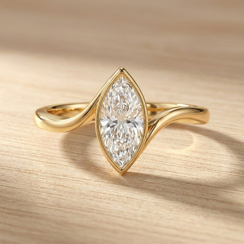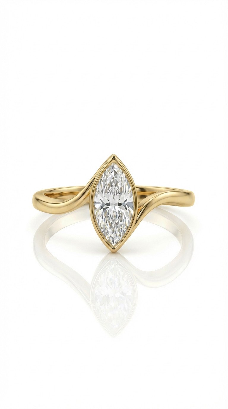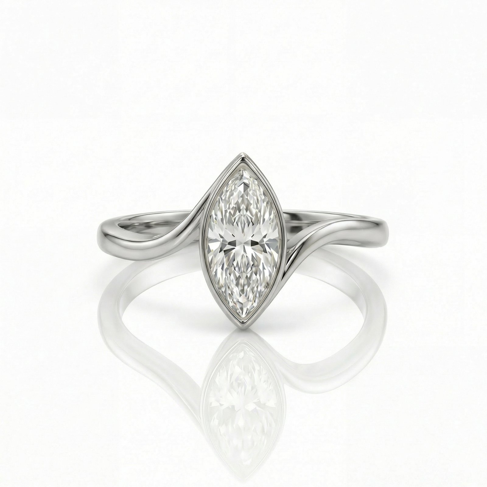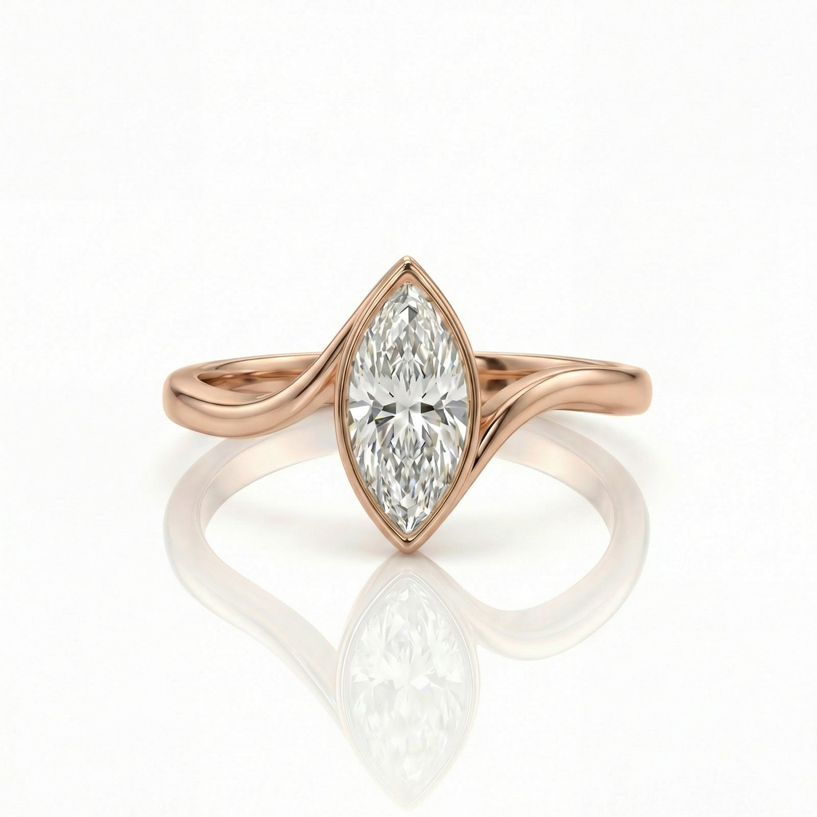 טבעת מיוחדת משובצת יהלום מרקיזה במשקל לבחירתך בעיצוב גלי וסופר מיוחד