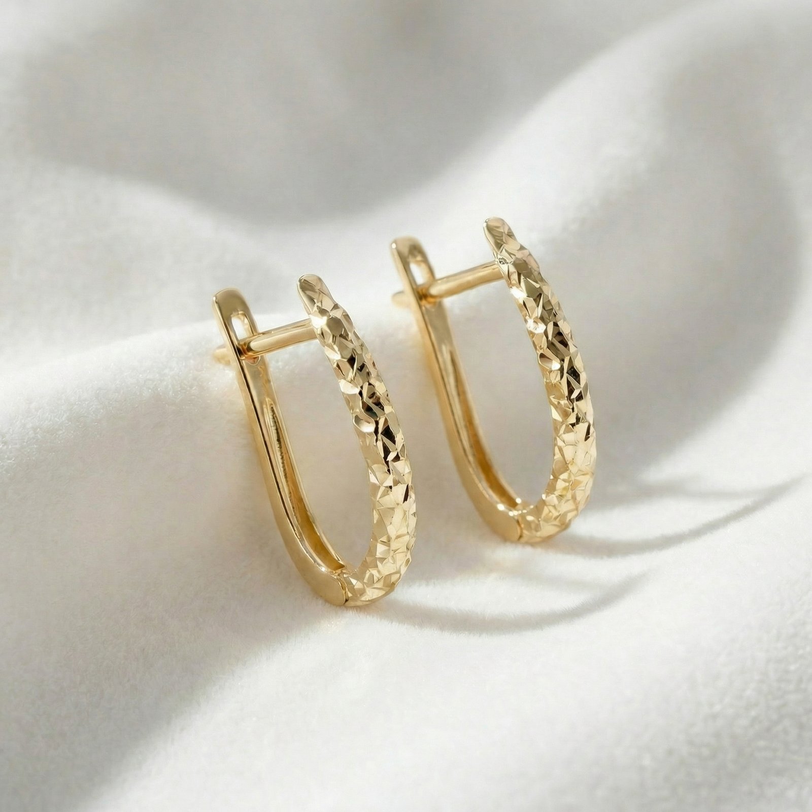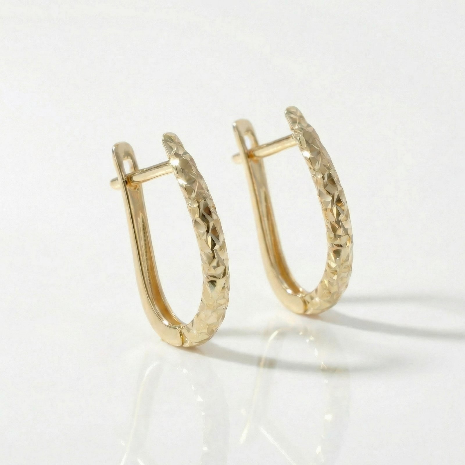 עגילי חישוק זהב 14k בעיצוב בננה עם חריטות לייזר לנצנוץ מקסימלי