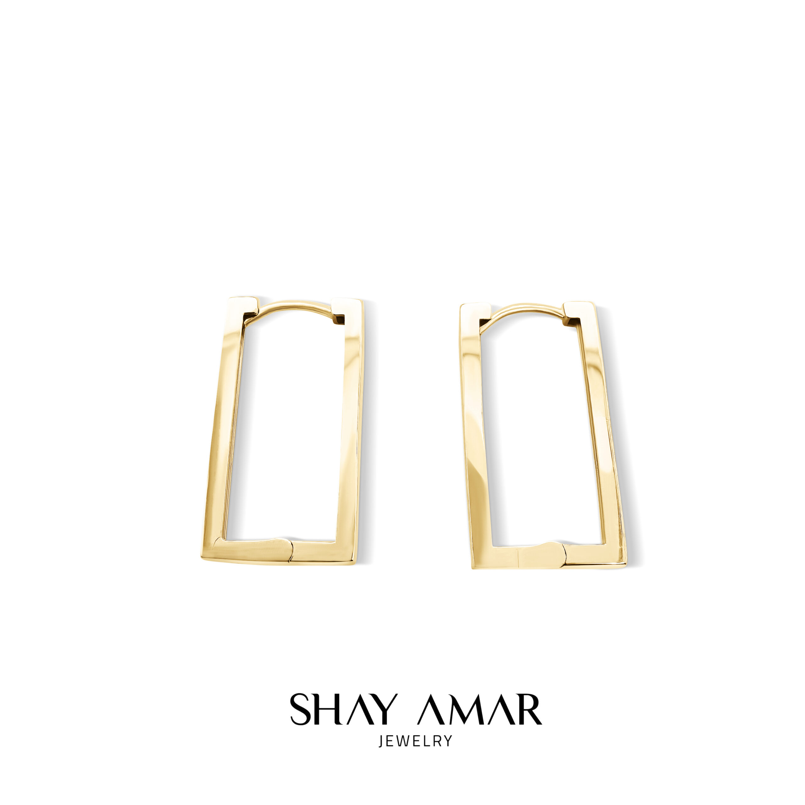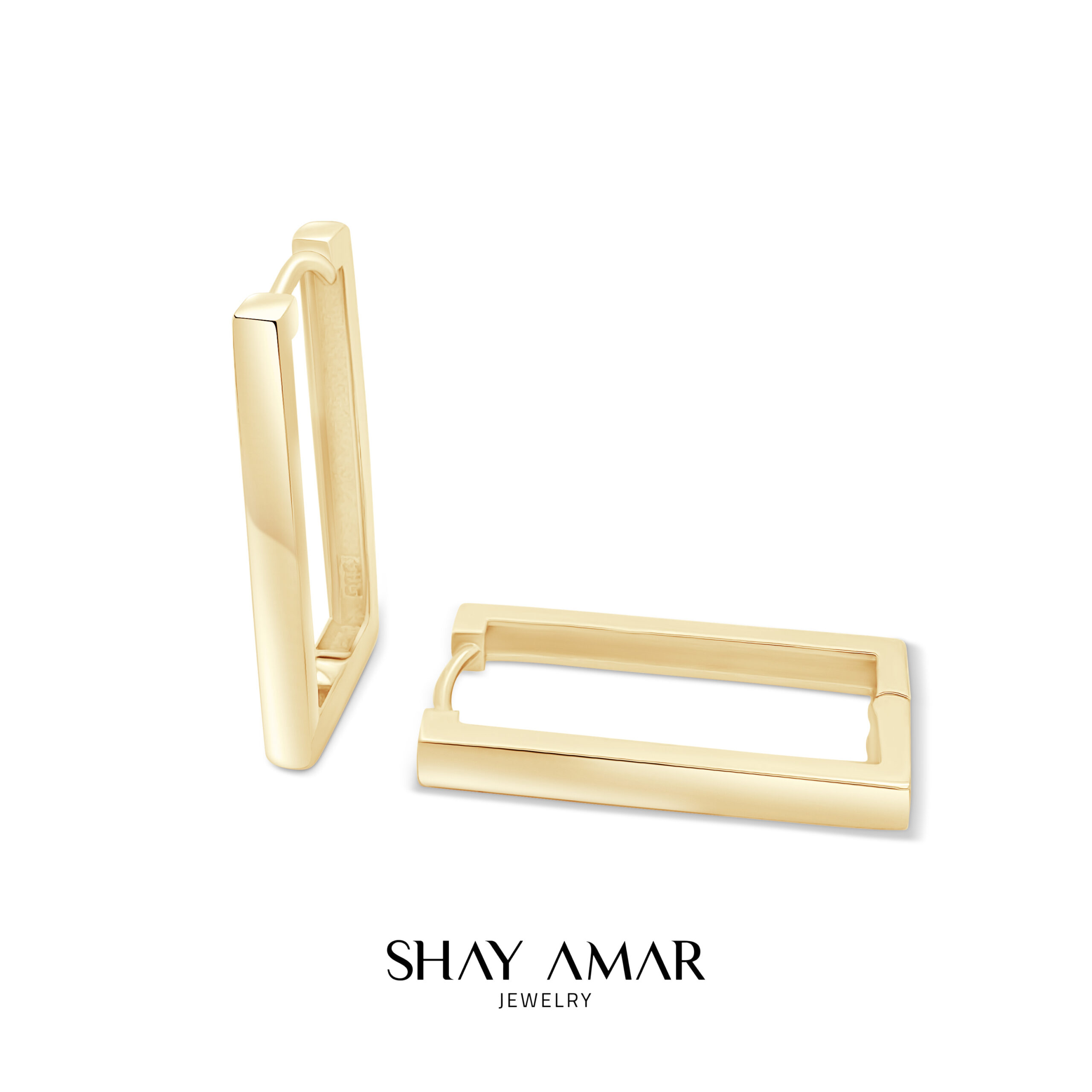 עגילי זהב 14k בעיצוב מלבני מיוחד ומלא בסטייל