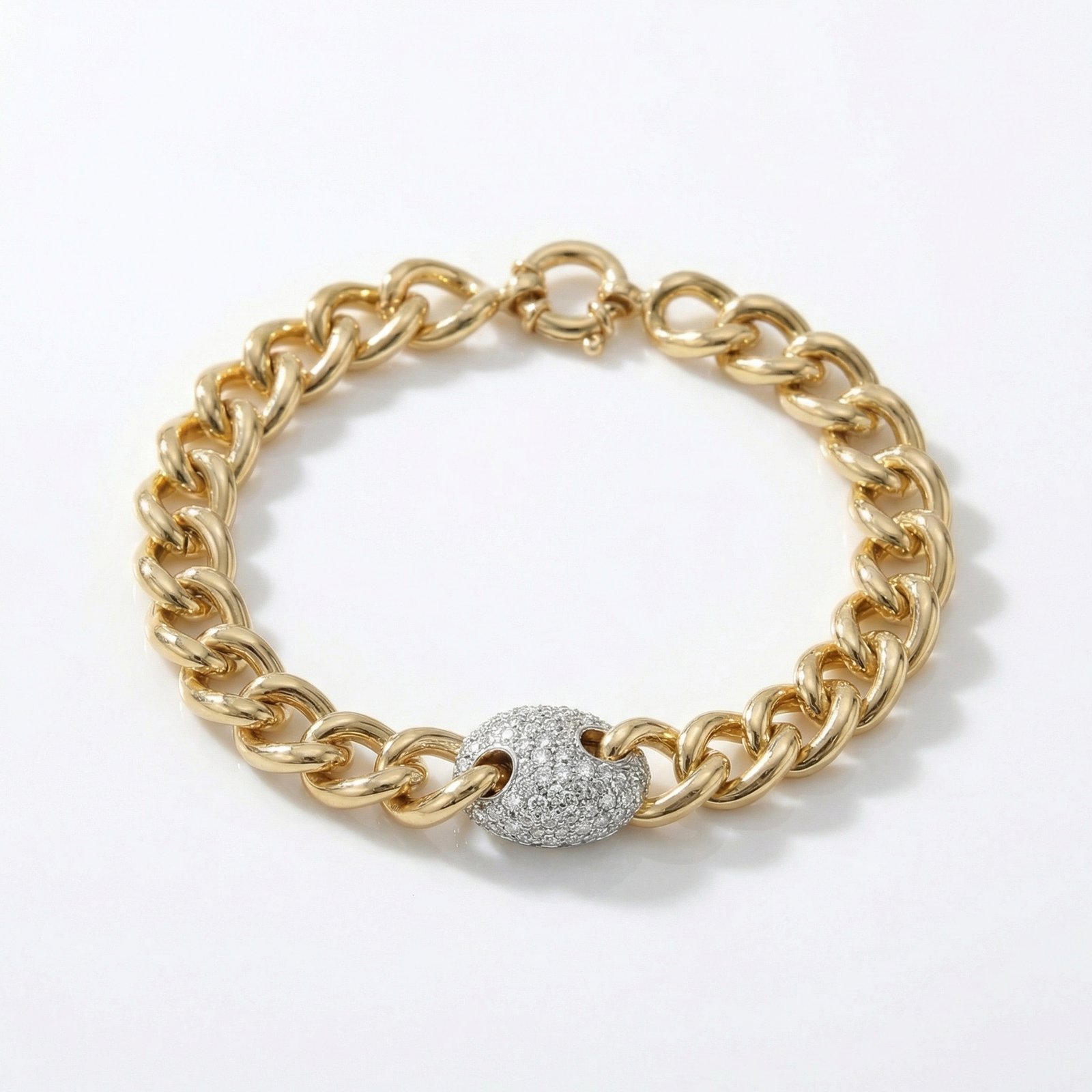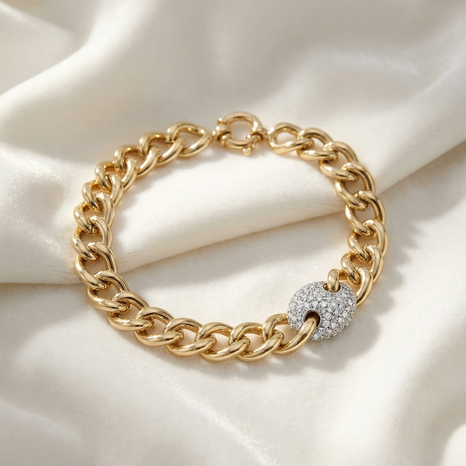 צמיד זהב 14K איטלקי עם חוליה אחת זהב לבן משובצת בעיצוב מיוחד