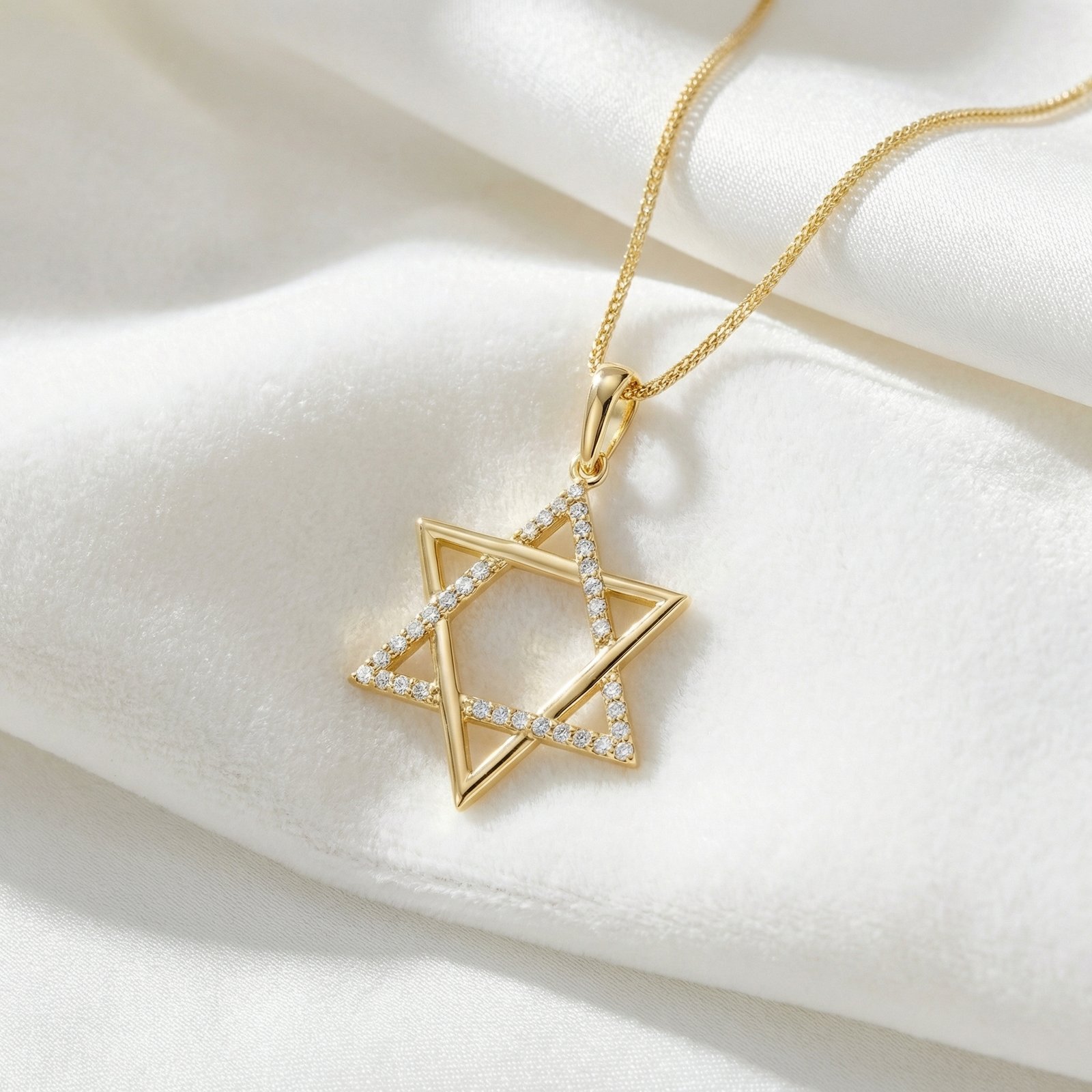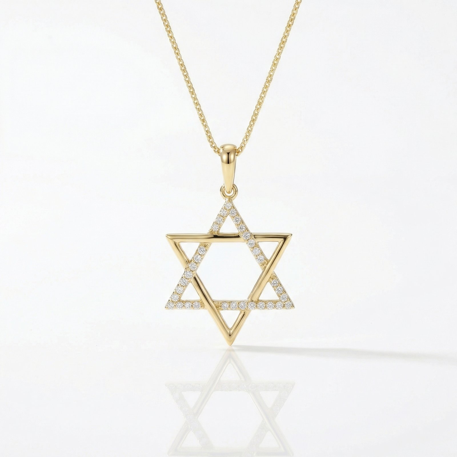 שרשרת עם תליון מגן דוד זהב 14k משובץ חצי בעיצוב מיוחד ומהמם