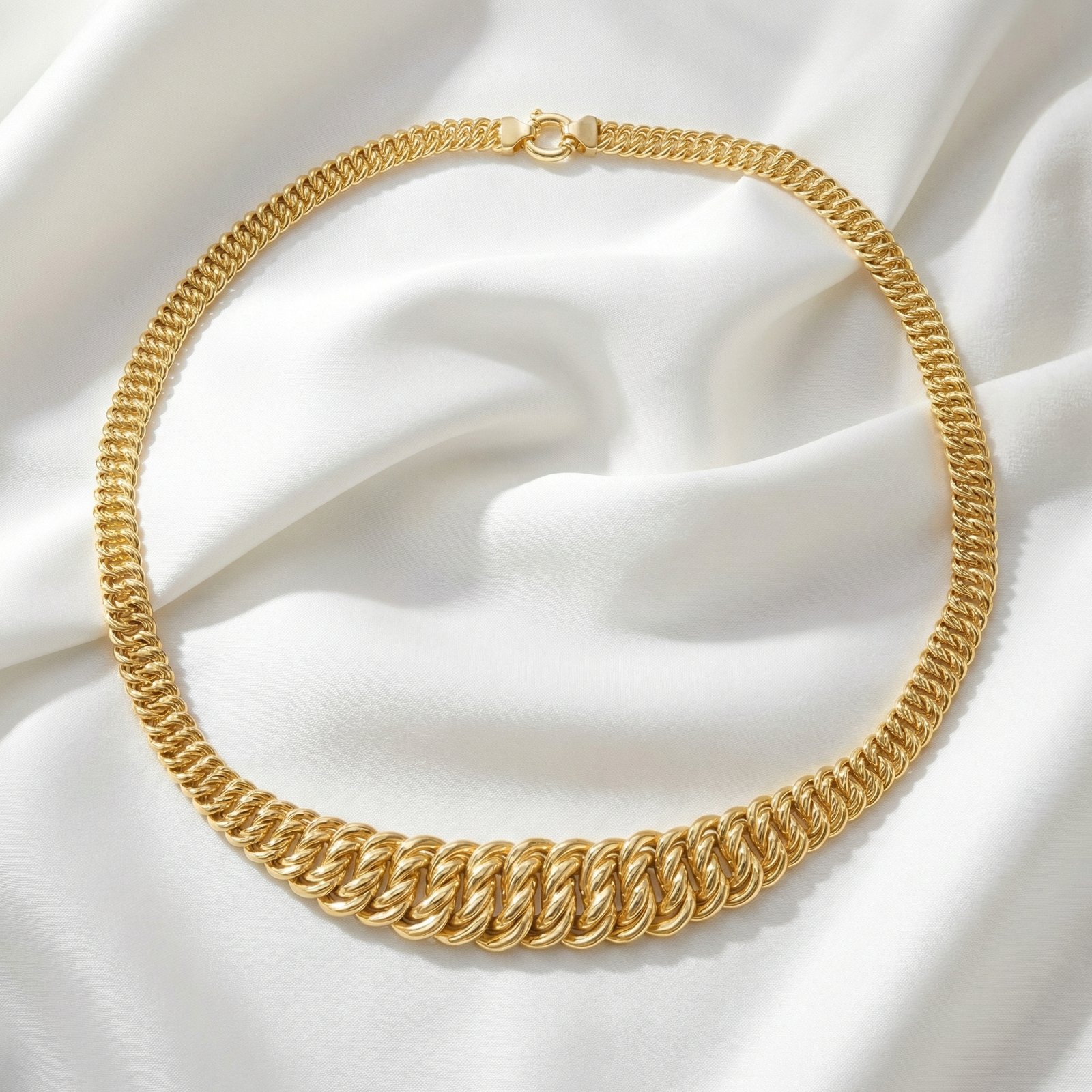 שרשרת זהב 14k בעיצוב איטלקי קלוע עם התרחבות במרכז לנוכחות